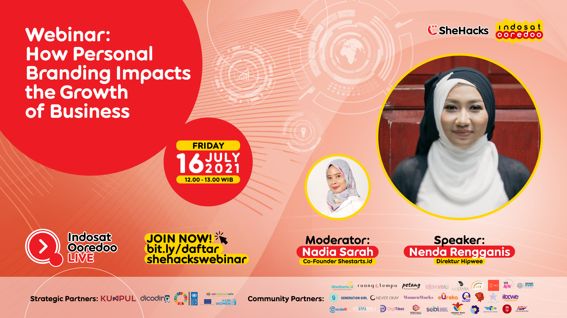 Ikuti webinar SheHacks 2021 yang akan mengangkat topik “How Personal Branding Impact the Growth of Business” bersama Nenda Rengganis, Direktur Hipwee.