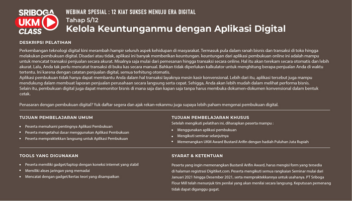 Peserta yang ingin memenangkan Bustanil Arifin Award, harus mengisi form yang tersedia di halaman registrasi Digitiket.com. Peserta mengikuti semua rangkaian Seminar mulai dari Januari 2021 hingga Desember 2021, serta mempraktekkannya untuk usahanya. PT Sriboga Flour Mill telah menunjuk tim penilai yang akan menilai secara langsung. Keputusan pemenang tidak dapat diganggu gugat.