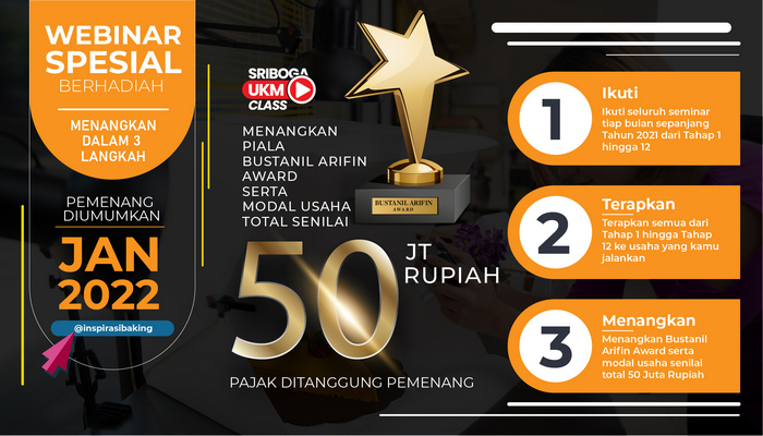 Peserta yang ingin memenangkan Bustanil Arifin Award, harus mengisi form yang tersedia di halaman registrasi Digitiket.com. Peserta mengikuti semua rangkaian Seminar mulai dari Januari 2021 hingga Desember 2021, serta mempraktekkannya untuk usahanya. PT Sriboga Flour Mill telah menunjuk tim penilai yang akan menilai secara langsung. Keputusan pemenang tidak dapat diganggu gugat.