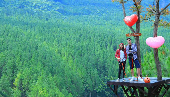 Ada berbagai wahana di tempat ini. Salah satunya adalah menikmati area sekitar dari ketinggian dengan menaiki wahana Hot Air Baloon. Terdapat juga wahana Zip Bike dimana pengunjung dapat menaiki sepeda di atas track tali yang tergantung. Masih banyak wahana menarik lain, seperti Gantole, Ayunan Syk Swing, Bamboo Sky, dan Sky Tree.
