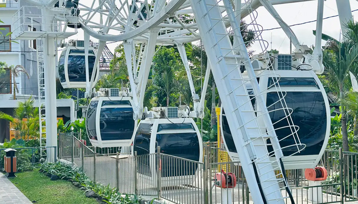 Masuki salah satu atraksi paling memukau di The Wheel Bali dan nikmati pemandangan pulau 360 derajat yang menakjubkan dari atas . Bianglala ini memiliki tinggi 42,5 meter dan mengundang Anda untuk menikmati perjalanan yang lembut namun mengasyikkan yang menampilkan garis pantai, kaki langit, dan matahari terbenam keemasan Bali. Terletak di area yang strategis, tempat ini menawarkan jam operasional yang diperpanjang, menjadikannya tempat yang sempurna untuk menyaksikan pemandangan ikonis kapan saja.