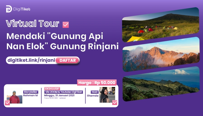 Tertarik dengan keindahan alam yang terdapat di Gunung Rinjani? Yuk ikuti keseruan menjelajahi Gunung Rinjani dengan mengikuti Virtual Tour Mendaki Rinjani dari Sembalun "Walk To Remember". Tunggu apa lagi? Buruan daftar!