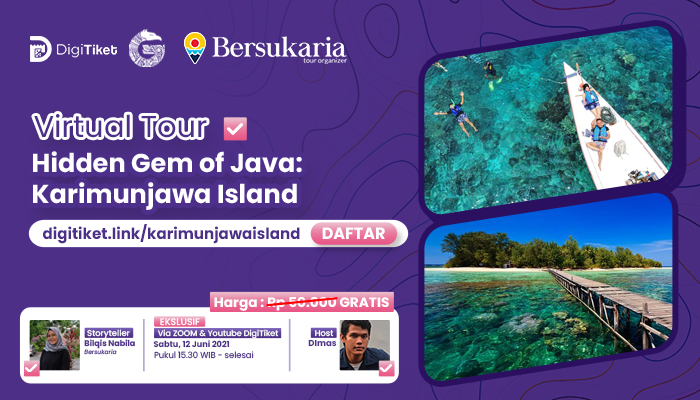 Jadi, sobat digi pasti penasaran kan bagaimana keindahan dan aktivitas apa saja yang bisa kita lakukan di Pulau Karimunjawa kan? Yuk langsung mendaftar virtual tour nya Hidden Gem of Java : Karimunjawa Island. Jangan sampai ketinggalan dan menyesal ya.