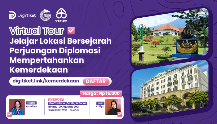 Penasaran dengan cerita lengkap bagaimana Indonesia mempertahankan kemerdekaan melalui jalur diplomasi? Yuk, ikuti Virtual Tour Dibalik Perjuangan Diplomasi Mempertahankan Kemerdekaan. Pastinya akan menarik banget loh, segera pesan tiketmu dan jangan sampai ketinggalan ya!