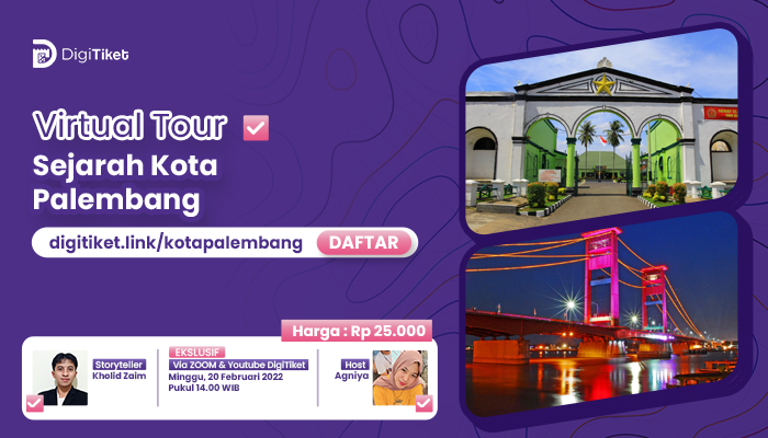 Masih banyak catatan sejarah yang tersimpan di Kota Palembang. Ingin tahu cerita selengkapnya ? Yuk ikutan Virtual Tour Sejarah Kota Palembang. Segera pesan tiket virtual tour di DigiTiket dan jangan sampai ketinggalan!