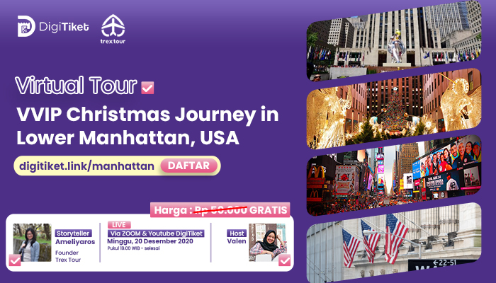 Tunggu apa lagi? Yuk gabung Virtual Tour USA Lower Manhattan. Di virtual tour ini, sobat Digi akan mengelilingi Lower Manhattan sekaligus mengetahui banyak fakta menarik yang New Yorkers bahkan tidak tahu!